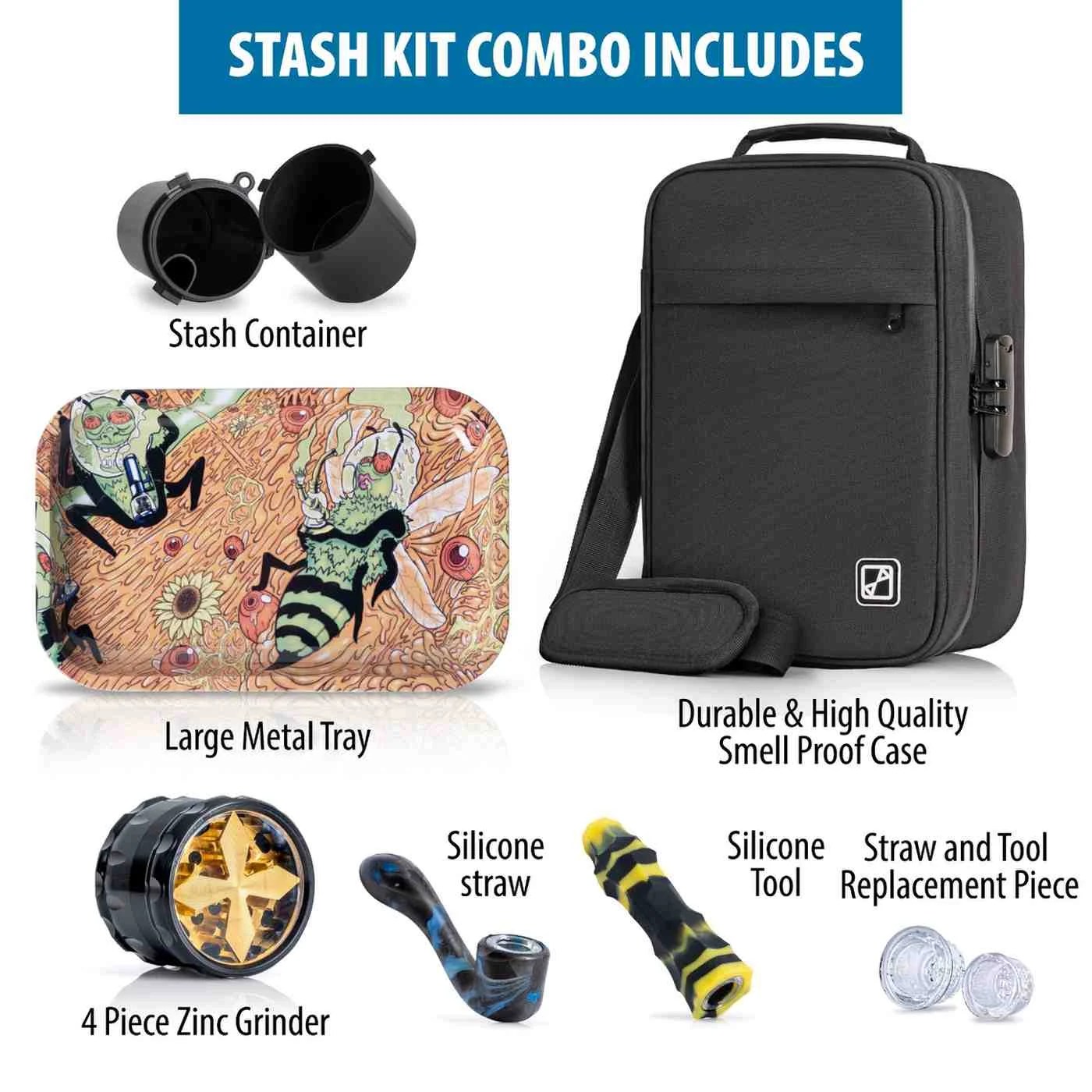 Get More Bang For Your Buck: This smell proof stash box comes with 1 x large metal rolling tray, 1 x 4-piece zinc grinder, 1 x silicone smoking pipe, 1 x hitter pipe, and 4 x replacement glass smoke bowls, rolling machine and stash container adding extra value to your order.